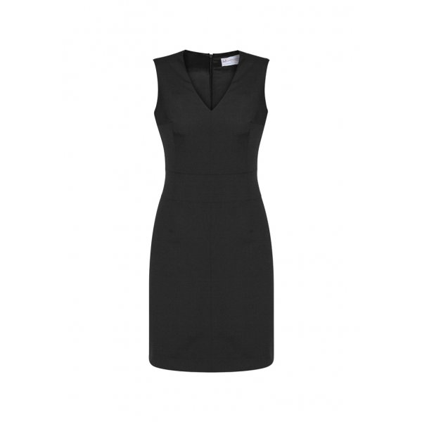 Description: 34021-Sleeveless-V Neck-Banded Waist-back zip
